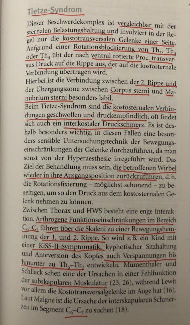 ich habe einen 10 jährigen Jungen zur Behandlung bekommen mit dem Tietze Syndrom. Zusätzlich hat er eine deutliche re. konkave Skoliose in der BWS.