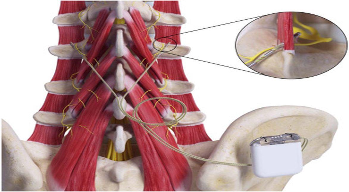 Lizenz: CC-BY •Eines dieser Vorgehen ist eine Art Schrittmacher für die tiefe Rückenmuskulatur. Dieser Neurostimulator soll zur Reduktion der Schmerzen sowie Verbesserung der Lebensqualität und Funktionsfähigkeit bei PatientInnen mit einem sogenannten Motor-Impairment * führen. Die Feststellung dieser motorischen Kontrollverluste wurde in dem hier beschriebenen Projekt nur durch einen positiven „Prone Instability Test“ definiert. Dieses Vorgehen entspricht allerdings nicht vollständig den aktuellen Empfehlungen.