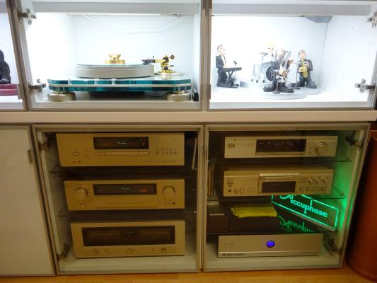 Ich sehe Accuphase, Sony und Marantz und unten rechts vielleicht irgend eine Spannungsfiltergeschichte (?).