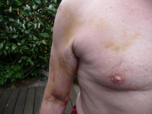 Vermisst habe ich insbesondere die flankierende Maßnahmen während der Akut- und Proliferationsphase. Hier kann z.B. eine ganz effektive Beschleunigung der Heilungsphase mit einfachsten Mitteln geschehen. Eines der Ziele sollte der möglichst schnelle Abbau der post-operativen Ergussbildung und die allgemeine Verbesserung der Trophik sein. Dies läßt sich z.B. durch Maßnahmen zur Verbesserung der vaskulären Situation in Anlehnung an die bekannten Methoden von Pfarrer Kneipp wirkungsvoll erreichen.