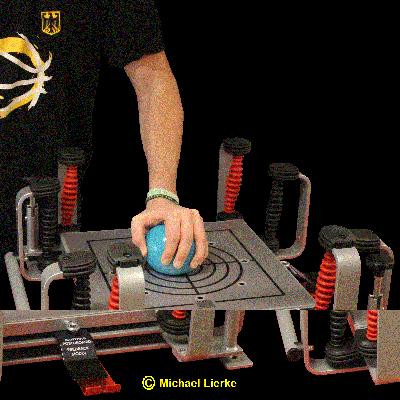 Der Ball erfüllt hierbei lediglich die Funktion der elastischen Anbindung an die Unterlage bei möglichst neutraler Handgelenksstellung. Der zielgerichtete Kontraktion der jeweils angestrebten Muskulatur erfolgt durch isometrischen Druck oder Zug in verschiedene Richtungen, wobei der Ball jeweils an seinem Fixpunkt haften bleibt.